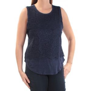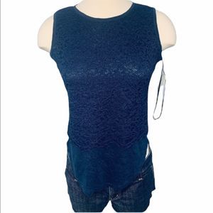 NWOT Maison Jules Navy Lace Sleeveless Knit Top