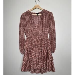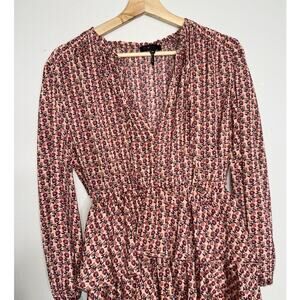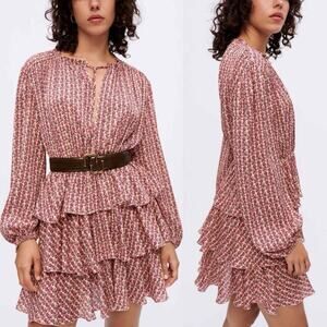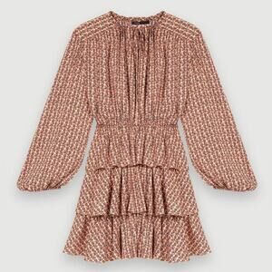 NWOT Maje Flounced Floral Printed Flowing Mini Dress Tiered Skirt Pink Size XS