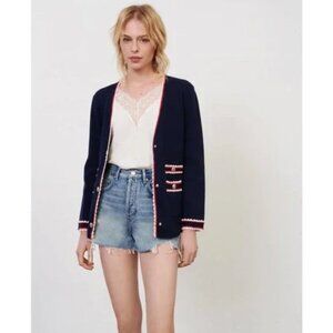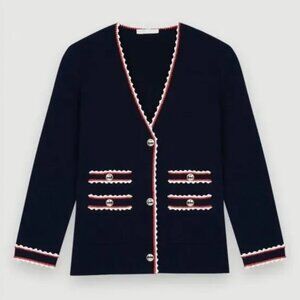 NWOT Maje Moulinette Contrast Trim Knit Blazer Cardigan Sweater Marine Blue XS