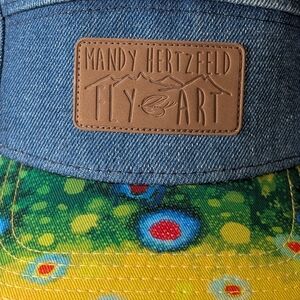 NWOT Mandy Hertzfeld Fly Art Denim Brook Trout Five Panel Hat Fishing Unisex