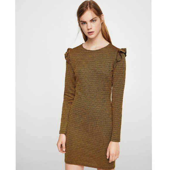 NWOT Mango Check Ruffle Sheath Dress