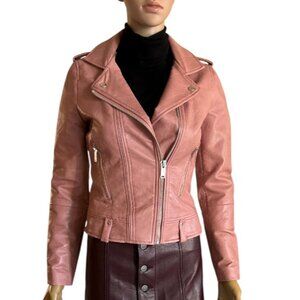 🎄 NWOT🛍️ Mango Faux Leather Pink Holiday Cocktail DUSTY ROSE MOTO JACKET XXS