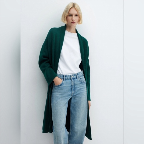 NWOT Mango MNG Green Oversized Knot Coat Coatigan Cardigan Duster Sweater Jumper