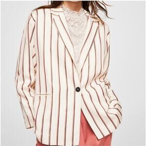 NWOT Mango Suit Cream Striped Boyfriend Blazer Size Small