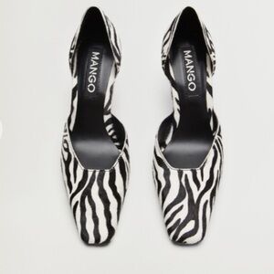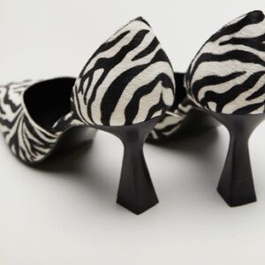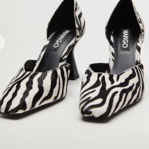 NWOT. Mango Zebra Leather High Heels. Size 6,5. Heel height 3”.