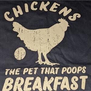 NWOT Chickens... The pet that poops breakfast. Graphic Tee. Navy blue