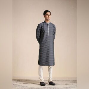 NWOT Manyavar Anchor Grey Silk Feel Kurta Pajama size M/38