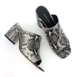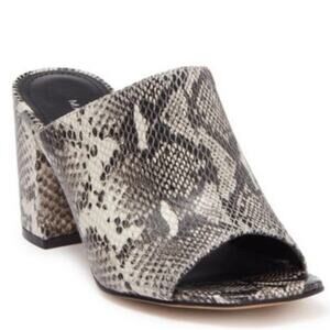 NWOT Marc Fisher Resa Snakeskin Print Block Heel Sandal In Black/Cream Size 7