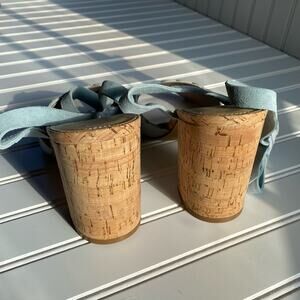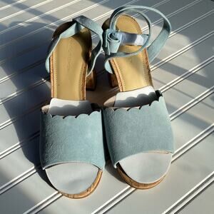 Women's Size 10 Blue Suede Open Toe Cuban Heel