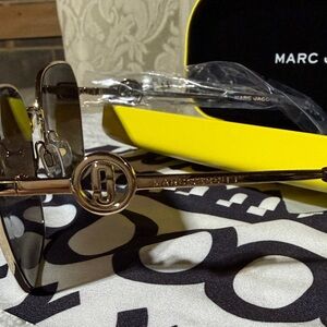 NWOT Marc Jacobs Black Sunglasses with Yellow Case and Patterned Cloth