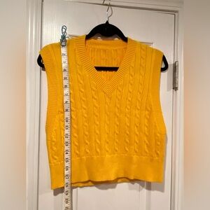 NWOT Marigold Yellow Size S V Neck Pullover Soft Cable Knit Cropped Sweater Vest