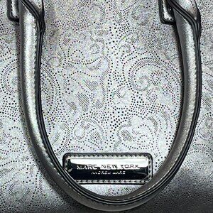 NWOT Mark New York Embelished Pattern Metalic Grey Satchel Bag