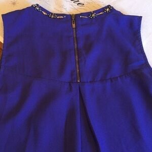Beautiful top is perfect for a night out. Bejeweled neckline and exposed zipper in back. Exquisite!