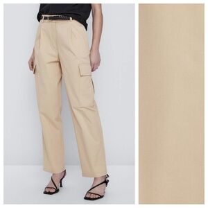 NWOT. Massimo Dutti Beige Maxi Cargo Trousers with Pockets. Size 12.