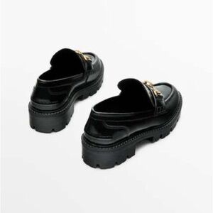 NWOT. Massimo Dutti Black Lug Sole Loafers. Size 6.