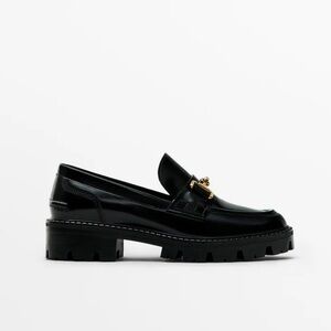 NWOT. Massimo Dutti Black Lug Sole Loafers with topstitching detail and decorative buckle, super track soles. Size 6. Ref. 1536/250.