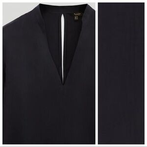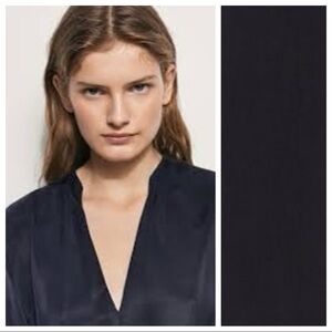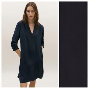 NWOT. Massimo Dutti Navy Blue 100% Cupro V-neckline Midi Dress with Straight fit, long sleeves with buttoned cuffs, side vents at the hem. Size 2. Ref. 6651/567. Pit to pit 18" flat, shoulders 15", sleeves 23", length 38". MD