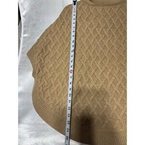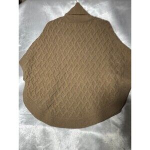Massimo Dutti aran cable knit poncho cape in camel beige. Finely crafted from wool, angora and cashmere blend, this stylish cape features belt fastening, shawl collar, batwing sleeves with button fastening on both sides, and round hemline.