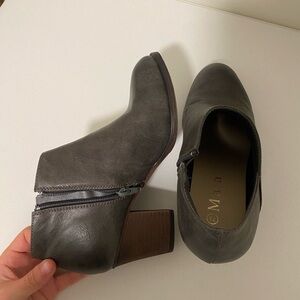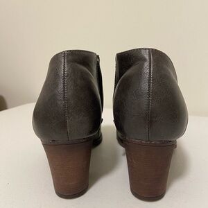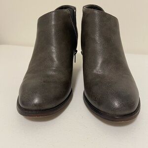 Women’s Mata ankle boots. Boots are made of a leather-like brownish gray material. Size 7.5. Has heels. Zips from the inside. Smoke free home!