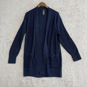 NWOT Max & Mia Women's Size M Navy Blue Long Cardigan Sweater Cotton Open Front