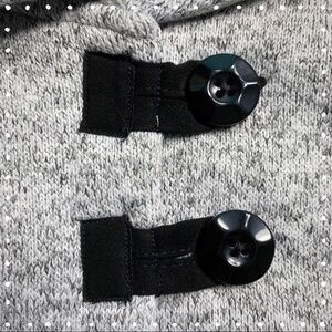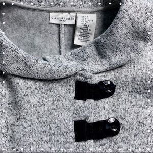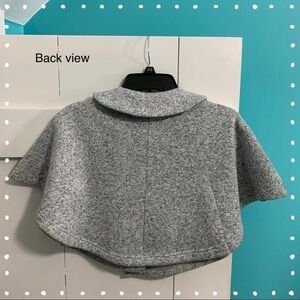 NWOT adorable collared heathered gray cape w/ soft fleece on inside. Sides of torso are sewn down at an angle to help keep in place but still keep shape of a cape. Black Microsuede loops at chest w/ 2 fancy black plastic buttons. 100% Polyester. Machine wash delicate, tumble dry low. Measures approximately 14 1/2” from neckline to hem in the front, 16” from neckline to hem in the back. From top of sewn angle along torso to other side angle is 12”. Wing tip to wing tip 30” when laying flat.