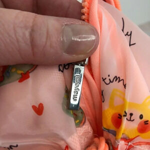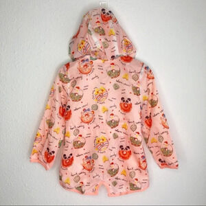 Unique jacket made from silky polyester with orange mesh lining, hooded, full zip, cute donut animals design, sherbet color, spring, lightweight toddler coat, little girl.