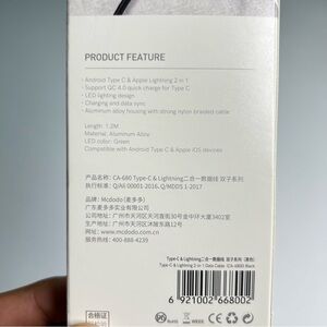 NWOT Mcdodo 2-in-1 Quick Charge Data Cable Android Type C & Apple Lighting 4FT