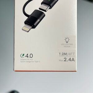 2-in-1 Quick Charge Data Cable Android Type C & Apple Lighting 4FT