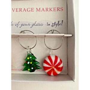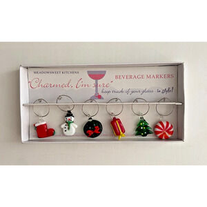 NWOT Meadowsweet Kitchens Wine Glass Drink Charms Christmas Ornament Set Of 6