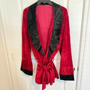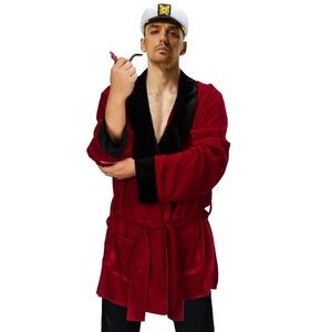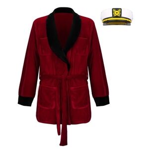 NWOT Men's Cosplay Pajama Red Velvet Robe with Belt Captain Hat Fake Pipe Size M