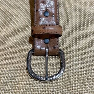 NWOT Mens Gift Ostrich Print Leather Belt + Western Buckle Sz 38 Y1025 USA 1 ⅜