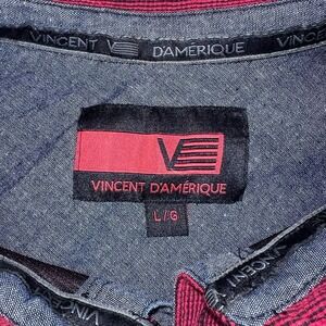 NWOT Men’s Large Vincent D’Amerique SS Checkered 1/4 Button Casual Shirt