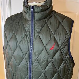 NWOT Men's Nautica Diamond Quilted Zip Front Puffer Vest Olive Green Size MEDIUM