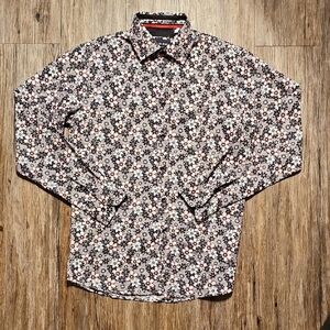 NWOT Mens Silver Stone Gothic Floral Modern Fit Long Sleeve Button Down Shirt M