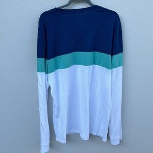 Big & Tall Men’s Sonoma Color Block Crew Neck Long Sleeve Shirt. Dusty Blue, Green, and White. Size XXLT