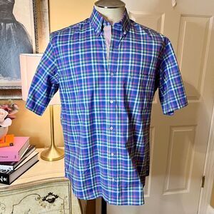 NWOT Men's Tailorbyrd Stretch Cotton Colorful Plaid Button Down Shirt Sz MEDIUM