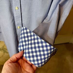 NWOT Men's Thomas Dean Button Front Blue Black White Plaid Shirt Size MEDIUM
