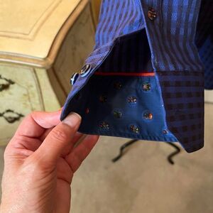 NWOT Men's Visconti Black Blue Gingham Button Down Flip Cuff Shirt Size XXL 2XL