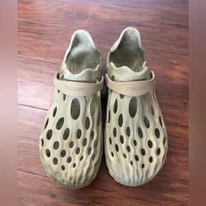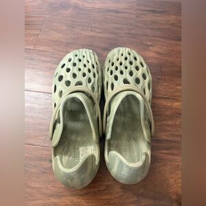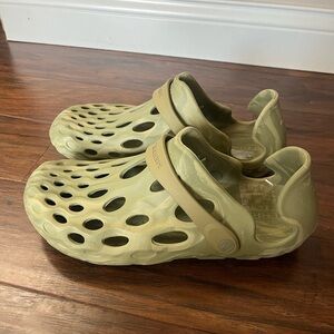 Brand New Merrell water sneakers! Unique cut-out design, Comfortable and versatile. The technical color of the shoe is called herb, but it is more like a light olive green color. I think the pictures to pick the color pretty good. I don’t have the original box for this but brand new, never worn an excellent condition. All of my items are well cared for and come from a smoke free home. These are priced way below the retail price if you go buy these in the store. Retail prices anywhere between $110 and $130.00. I am open to considerate offers.