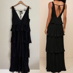 NWOT Mesmerizing Essence Black Pleated Backless Tiered Maxi Dress