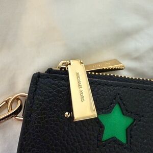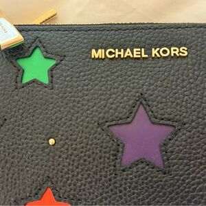 NWOT Michael Kors Adele Star-Cutout Pebbled Leather Wallet in Black
