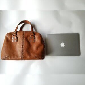 New, unworn 2010s edition of the iconic Michael Kors Astor bag. 2000s model off duty it bag comes in cognac "Luggage" color leather and silver hardware with subtle logo details. Includes a detachable long strap and can fit a tablet or small laptop (pictured is 13 inch MacBook).