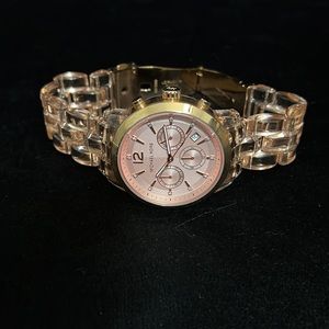NWOT Michael Kors Audrina Blush Acetate Rose Gold Chronograph Watch MK6203