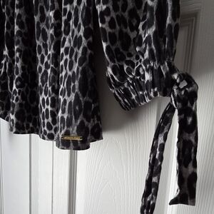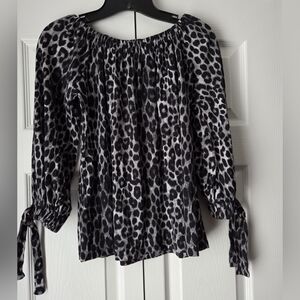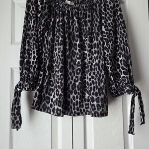 NWOT Michael Kors Black and Gray Leopard Print On Off Shoulder Blouse