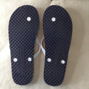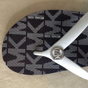 NWOT Michael Kors Black/White Flip Flops "11"; Thong; Logo with Silver accents; Beach, Resort wear, Vacation Vibes, New without Tags