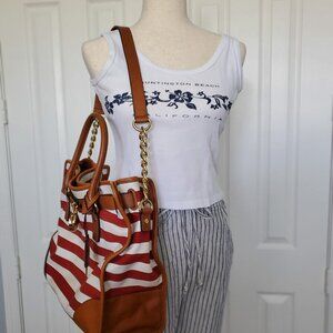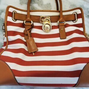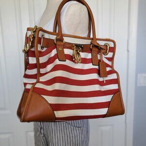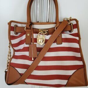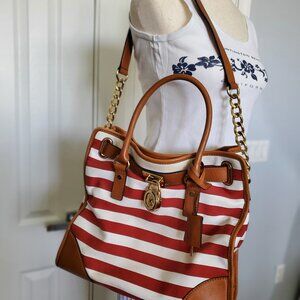 Michael Kors Hamilton Red & White Striped Nautical Satchel