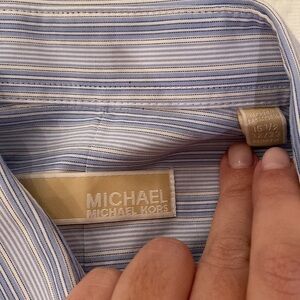 NWOT Michael Kors Mens Button Down Dress Shirt Blue and White stripe - M