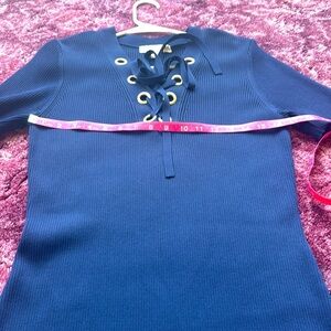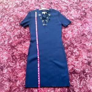 NWOT Michael Kors Navy Blue Lace-Up Bodycon Ribbed Midi Dress size L