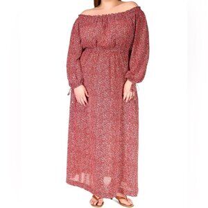 NWOT Michael Kors Off-The-Shoulder Maxi Dress Floral Print Long Sleeve Size XL