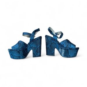 NWOT (only tried on) No Box - Step out in style with these Michael - Michael Kors platform heels. Featuring a striking blue snake print, these shoes are perfect for making a statement. Elevate your look with elegance and confidence.